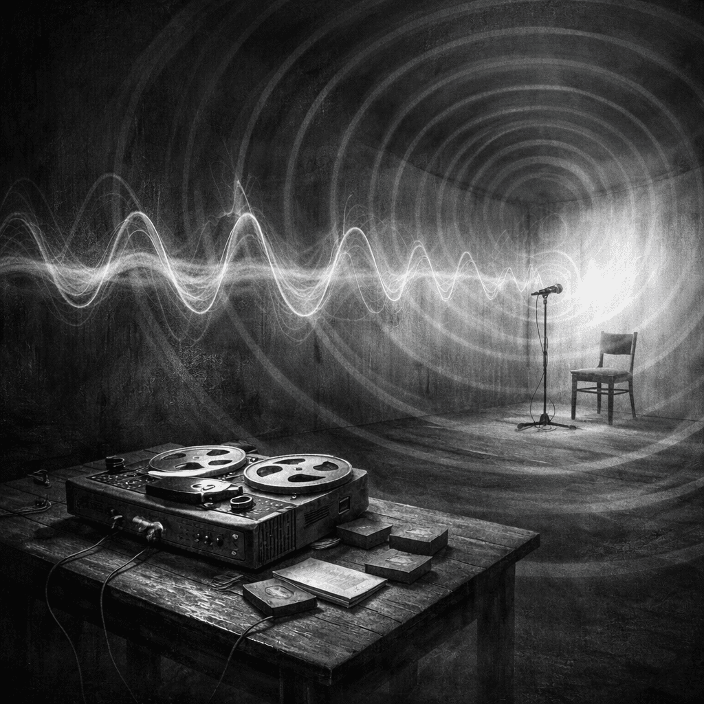 This paper brings together two works that at first glance belong to very different artistic territories: Samuel Beckett’s play Krapp’s Last Tape (1958) and Alvin Lucier’s sound piece I Am Sitting in a Room (1969). One comes from late modernist theatre, the other from experimental music and sound art. Yet when we look at them closely, they share a surprisingly similar structure. In both works a human voice interacts with recording technology. In both, repetition plays a crucial role. And in both cases speech gradually shifts away from meaning toward something closer to form.